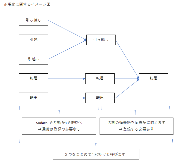 ※ 形態素解析器の標準の辞書(Sudachi辞書)とユーザーが作成した名詞辞書を用いて、変換する語(名詞)を判定します。