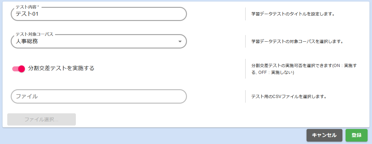 学習データには一括でのインポートと個別登録の二種類の登録方法があります。