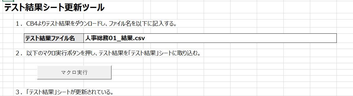 - マクロ実行ボタンを押下し、CSVファイルを出力します。