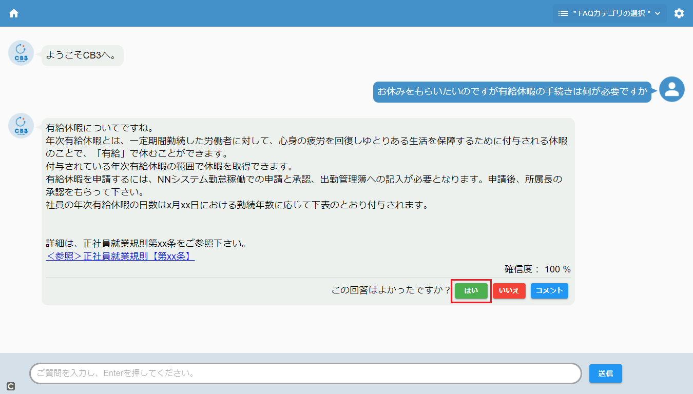 - Yes、Noで答える回答は汎用的な回答に変更します。