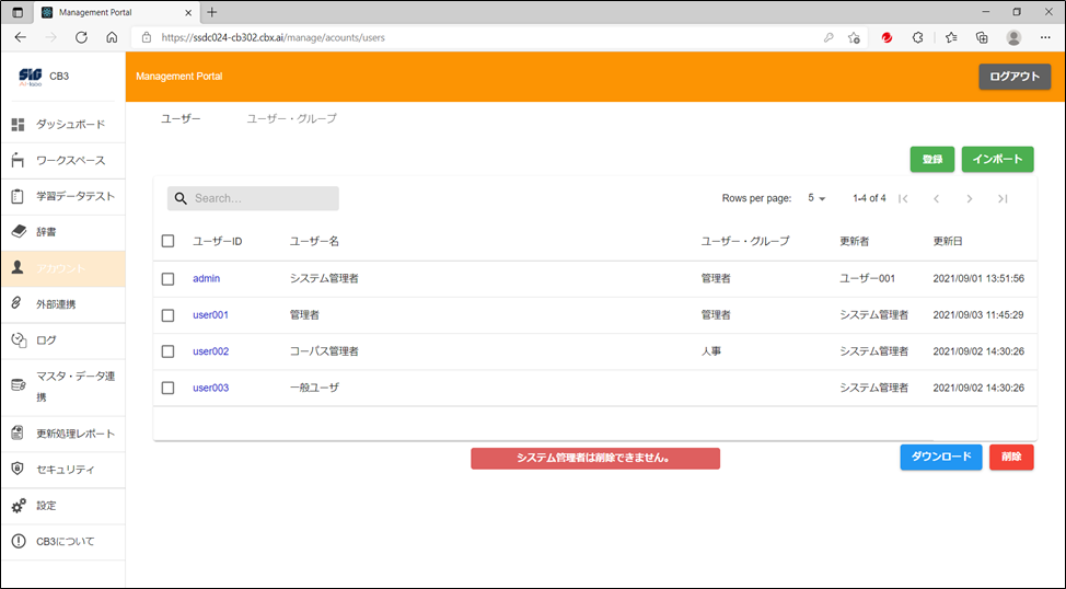 | 12 | 【不具合修正】管理者ユーザーを他のグループ(コーパス管理者のグループ)に変更出来てしまう点を修正 | 管理画面 |