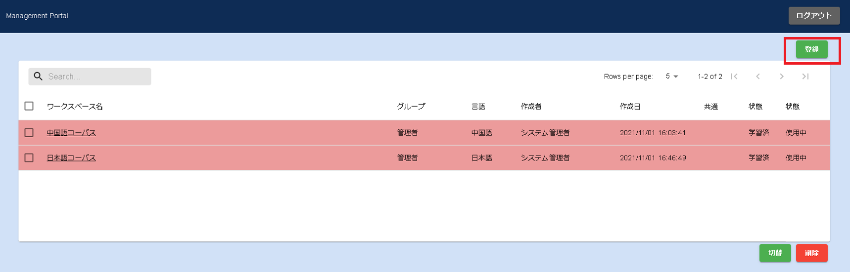 外国語ワークスペース登録